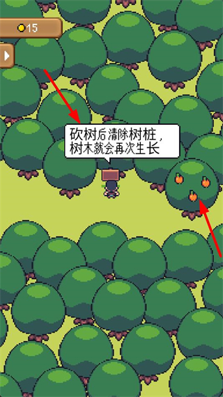 2、砍樹后清理對應的樹樁,樹木會再次生長,后續可重復伐木獲取資源,同時部分樹木會產出果實,收集果實豐富資源類型。