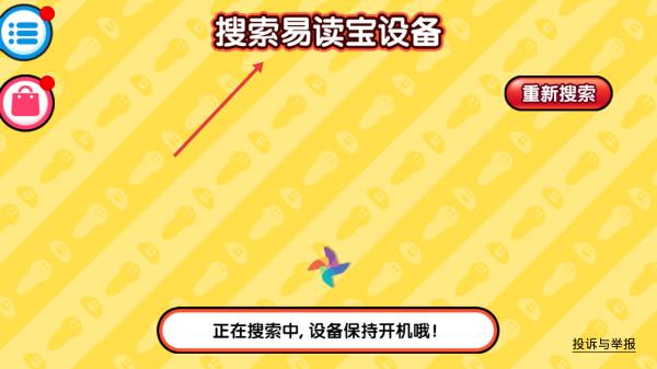 3、點擊搜索易讀寶設備界面,提示正在搜索,設備需保持開機狀態,設有重新搜索按鈕。