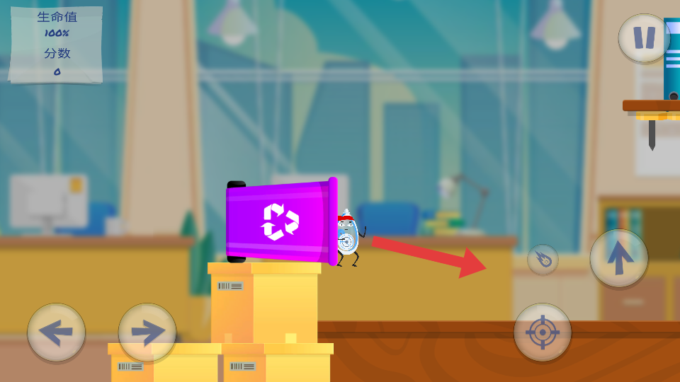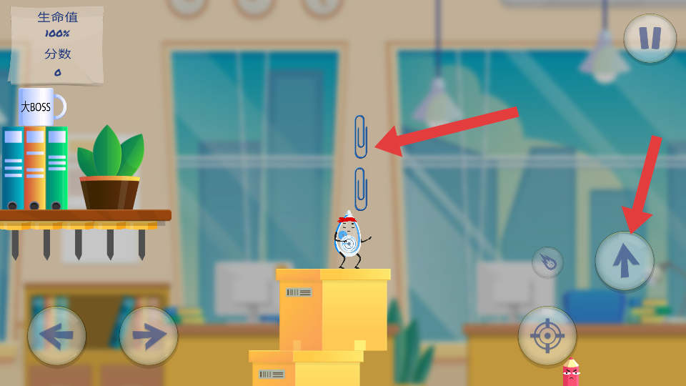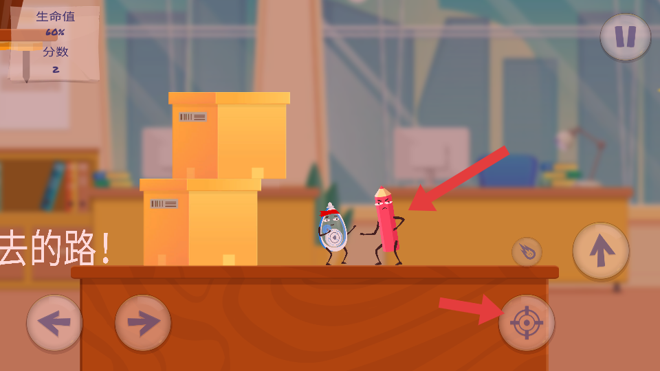 4、逃亡中會碰到如紅色鉛筆等敵人,此時可使用攻擊相關按鈕,與敵人戰斗,擊敗敵人后繼續尋找逃生之路。