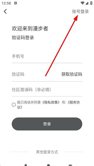 3、進入登錄頁面,默認驗證碼登錄模式,需填手機號、獲取并填驗證碼,可選填社區邀請碼,勾選協議后可登錄。