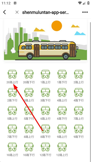 3、公交路線板塊,可看到20路、1路等多條公交線路的上行和下行選項,可選擇具體線路查看詳細信息。