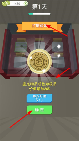 4、打磨成功后物品成色會提升,價值也會增加,此時點擊確定按鈕確認結果,即可完成本次打磨,提升物品的典當收益。