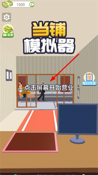 1、看到當鋪界面,點擊屏幕即可開始營業,開啟當鋪的經營流程,準備接待前來典當物品的客人。