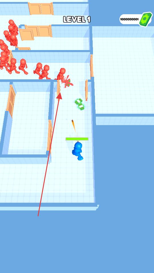 2、游戲開始后操控藍色角色移動,遇到紅色角色時,利用武器發起攻擊,擊敗敵人同時留意場景中散落的道具,收集它們來增強自身的戰斗能力。