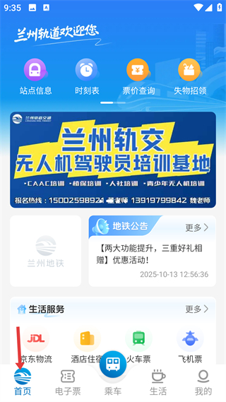 1、首頁提供站點信息、時刻表等軌道服務,集成地鐵公告與生活服務,是本地軌道及生活服務的綜合入口。