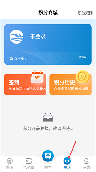 4、生活頁面含每日簽到領積分、積分歷史查詢功能,后續可兌換商品,是用戶權益與福利的管理板塊。