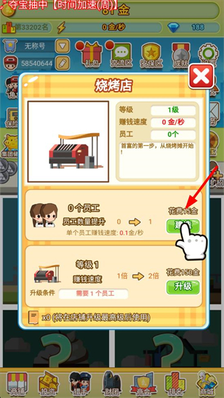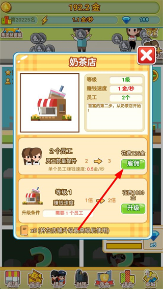 3、雇傭員工提升店鋪員工數量,增加單個員工賺錢速度,提升店鋪賺錢效率,加速財富積累。