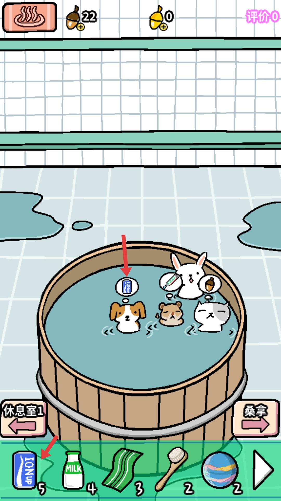 2、在溫泉界面,根據動物需求,點擊下方對應物品,如IONup等,滿足動物需求,能獲得好評與獎勵,助力經營。