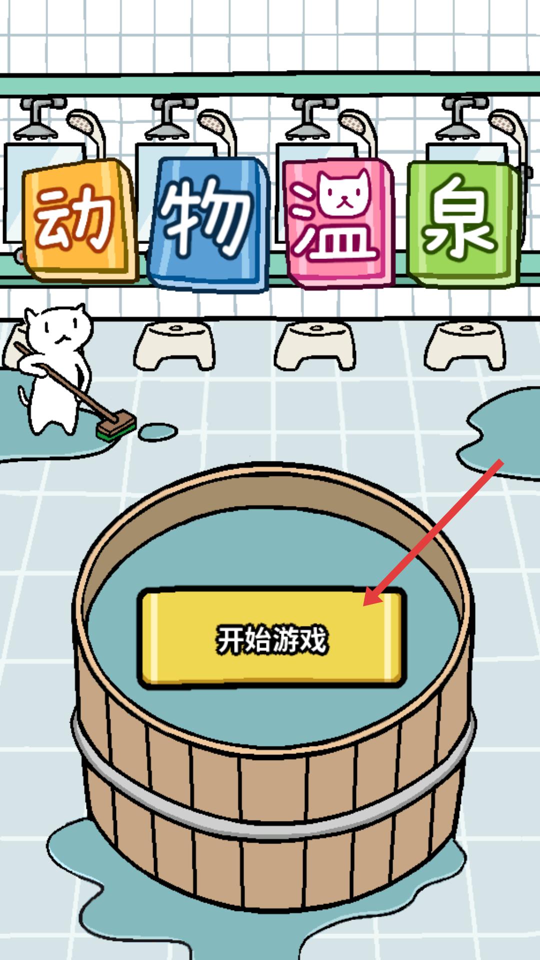 1、點擊【開始游戲】,進入動物溫泉經營界面,開啟溫泉經營之旅,可接待不同動物顧客,提升溫泉收益。