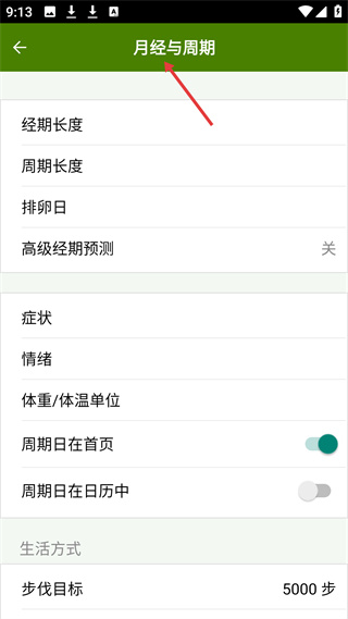 2、月經與周期界面可設置經期長度等,還有癥狀記錄及體重體溫單位設置,輔助精準管理經期和身體狀態。