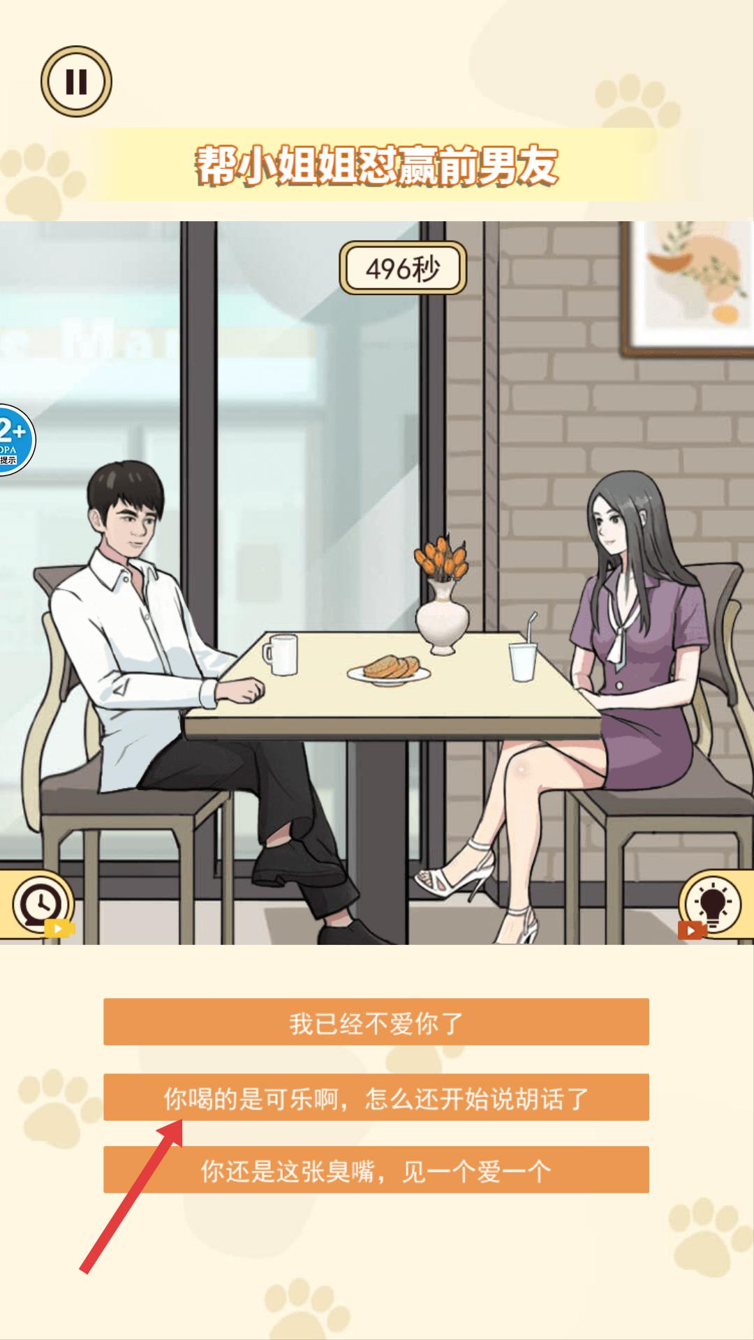 2、在對話場景,根據前男友的話語,選擇合適的懟人選項,比如你喝的是可樂啊,怎么還開始說胡話了,讓前男友情緒變化。