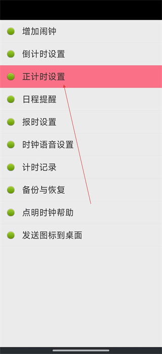 3、在時鐘設置頁面選擇正計時設置,進入對應的設置界面,可調整正計時提醒間隔等參數內容。