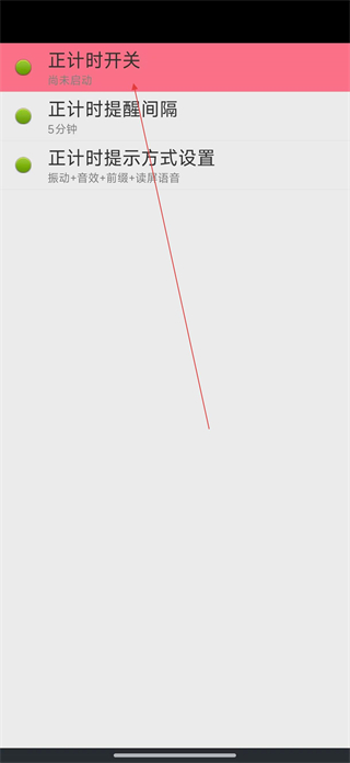4、在正計時設置界面找到正計時開關選項,可開啟或關閉該功能,也能設置正計時提示方式等內容。