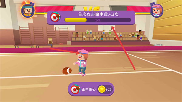 3、在投擲過程,會有首次攻擊命中敵人3次的任務提示,努力精準投擲,命中敵人,完成任務,還能獲得金幣獎勵。