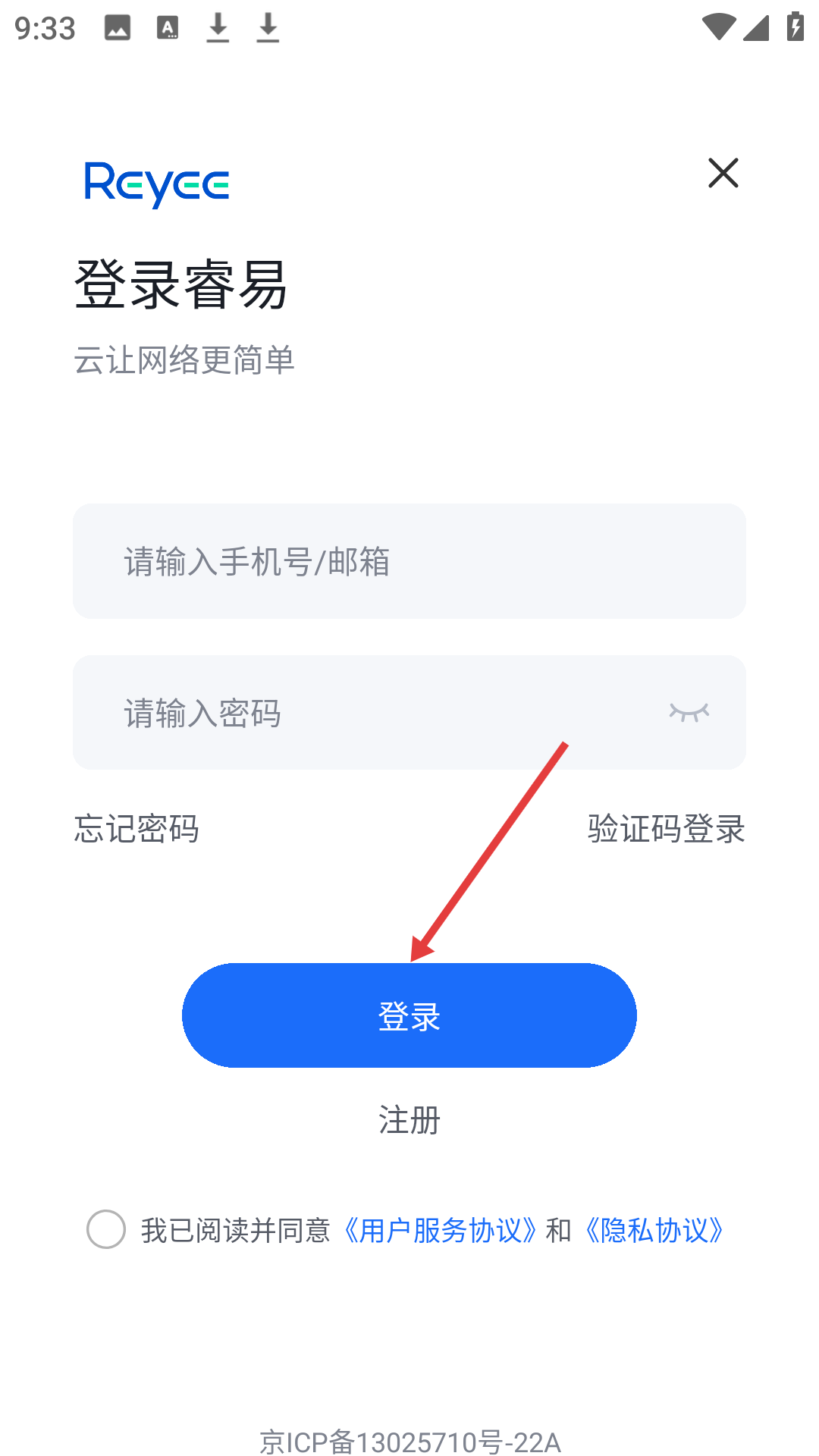 1、登錄界面可輸入手機號郵箱和密碼登錄,也能選擇驗證碼登錄,有忘記密碼和注冊選項,需同意相關協議。