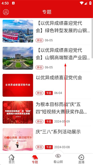 2、登錄后進入專題頁面,瀏覽展示的新聞專題列表,選擇目標新聞,點擊進入該新聞的詳情頁面查看內容。