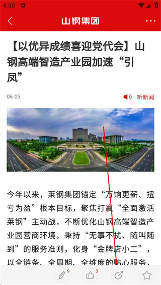 3、在新聞詳情頁閱讀完整內容,找到頁面中的分享按鈕,點擊該按鈕彈出包含多種分享渠道的選項菜單。