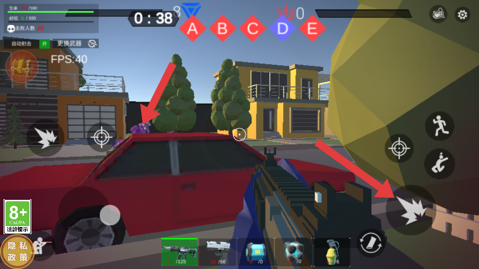 3、進入戰斗場景,利用操作按鈕移動角色,瞄準僵尸,進行射擊,同時注意利用場景里的掩體躲避攻擊。
