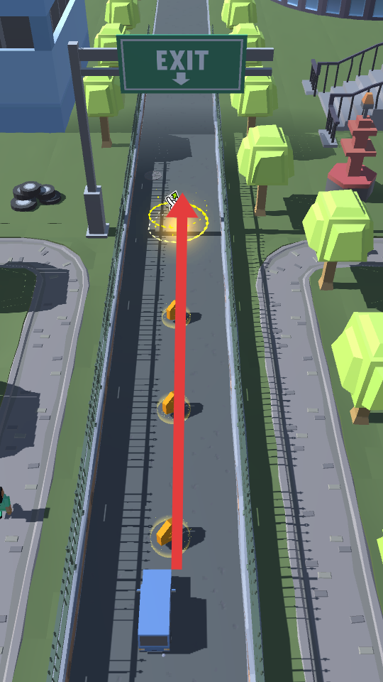 4、繼續沿著道路向上,保持朝向帶有光圈的目標,同時留意前方可能出現的新障礙,順利駛向目標。