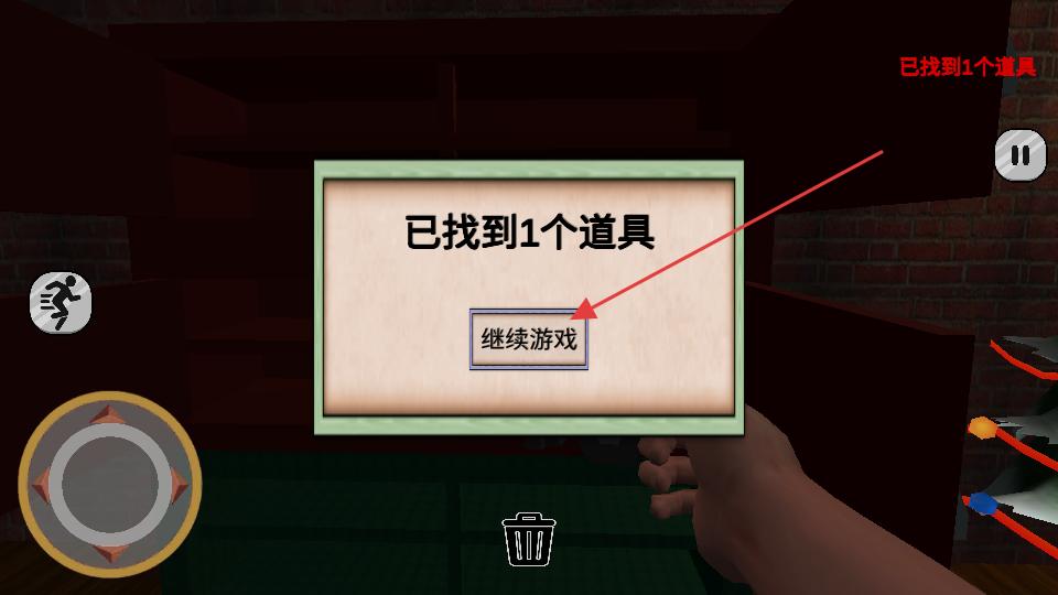 4、當找到道具后界面會彈出已找到道具的提示窗口,點擊繼續游戲按鈕,繼續在場景中探索,收集更多道具,推進怪物主題探索的進程。