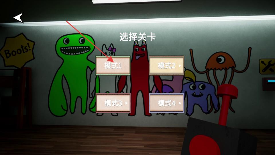 2、在關卡選擇點擊模式1選項,進入對應的游戲場景,此時留意場景中的各類元素,準備通過操作來探索場景,尋找可收集的道具。