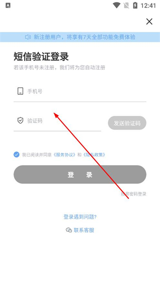 4、如需使用更多功能進入短信驗證登錄頁面,填寫手機號獲取并輸入驗證碼,勾選相關協議后點擊登錄,完成賬號驗證使用完整功能。
