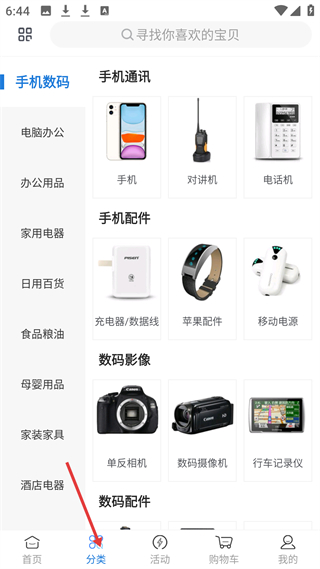 3、分類板塊,手機數碼類細分手機通訊、配件、影像等類別,還有電腦辦公、家用電器等多分類方便用戶查找特定商品。