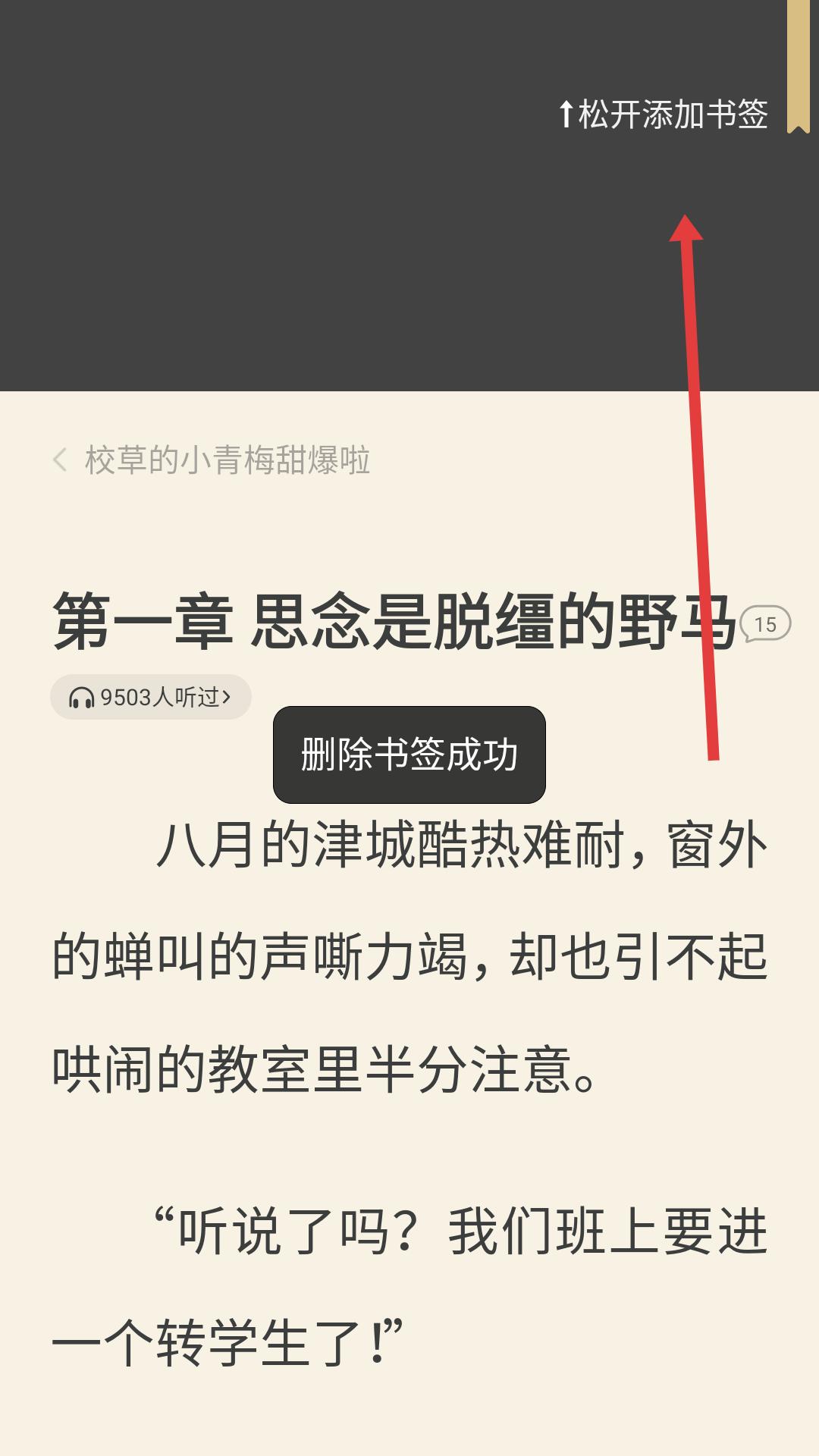 3、在書籍閱讀界面若要添加書簽,按照提示進行相關操作,若要刪除書簽,也可執行對應操作,能看到刪除書簽成功等反饋。