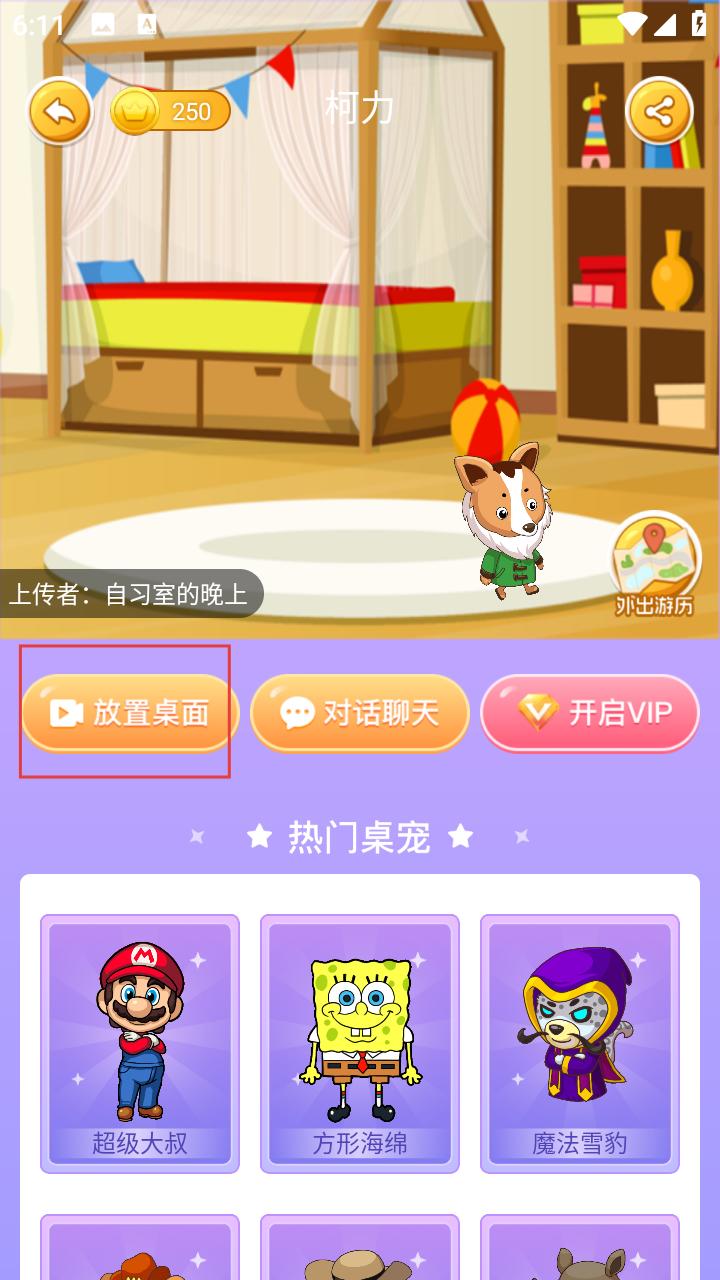 2、進入萌寵詳情界面后,點擊放置桌面按鈕,即可觸發桌寵放置流程,讓萌寵成為你桌面的可愛伙伴。