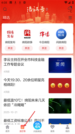 2、涪江號板塊,聚合綿陽發布等官方賬號,發布政務、活動、天氣等新聞,是獲取本地權威資訊的渠道。