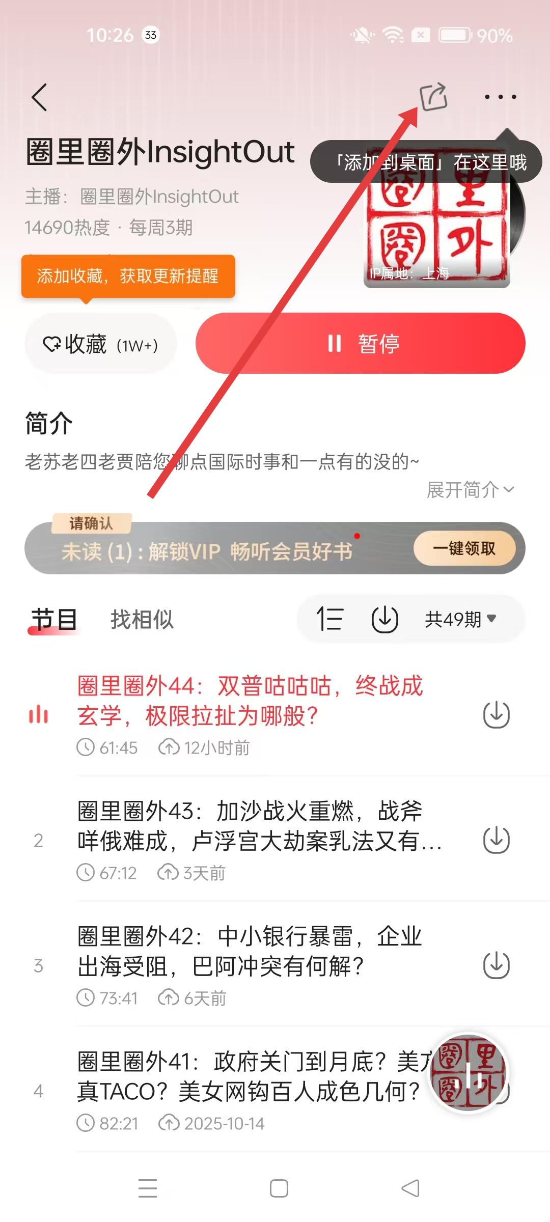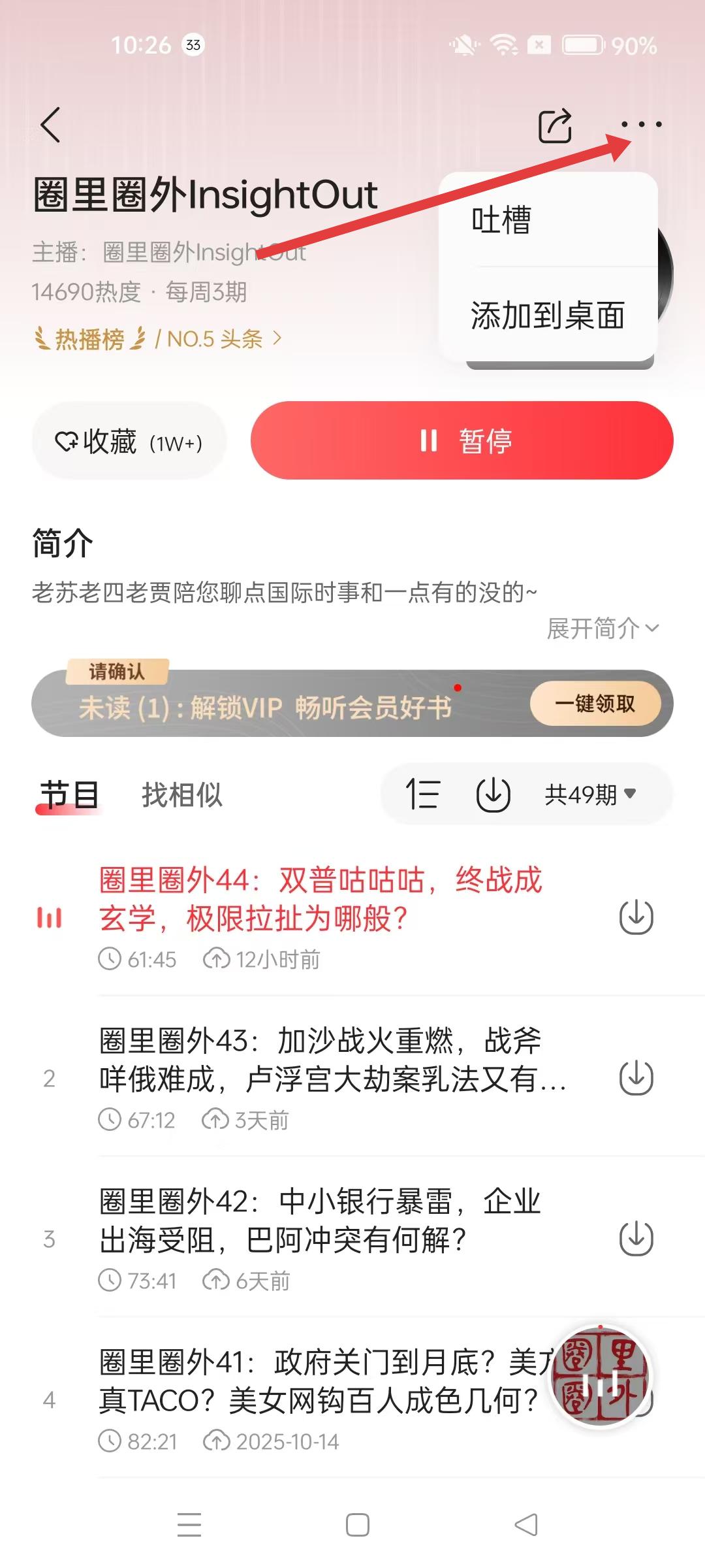 2、節目播放頁面還可進行收藏、查看節目列表、下載節目等操作,方便隨時收聽和管理喜歡的節目。