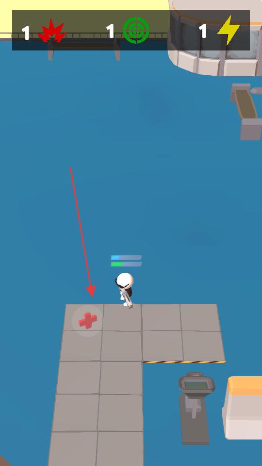 2、操控角色移動到帶有紅色十字標記的平臺上,留意界面上方的火焰、瞄準、閃電等圖標,了解當前可使用的能力,同時觀察周圍場景,準備應對即將出現的狀況。