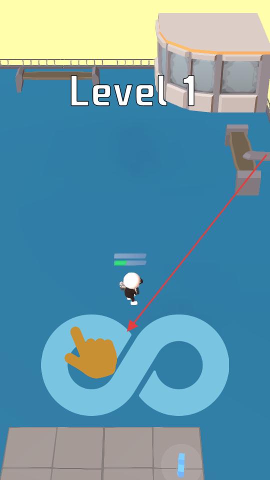 1、進入大混戰競技場游戲的Level1,按照提示操作,讓角色在藍色場景中移動,開啟冒險挑戰,為后續收集物品、對抗敵人做準備。