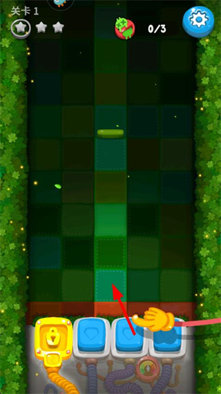 1、進入關卡后,操作下方的藍色磚塊按鈕,將磚塊投放到上方格子上,逐步填充區域,朝著收集目標推進。
