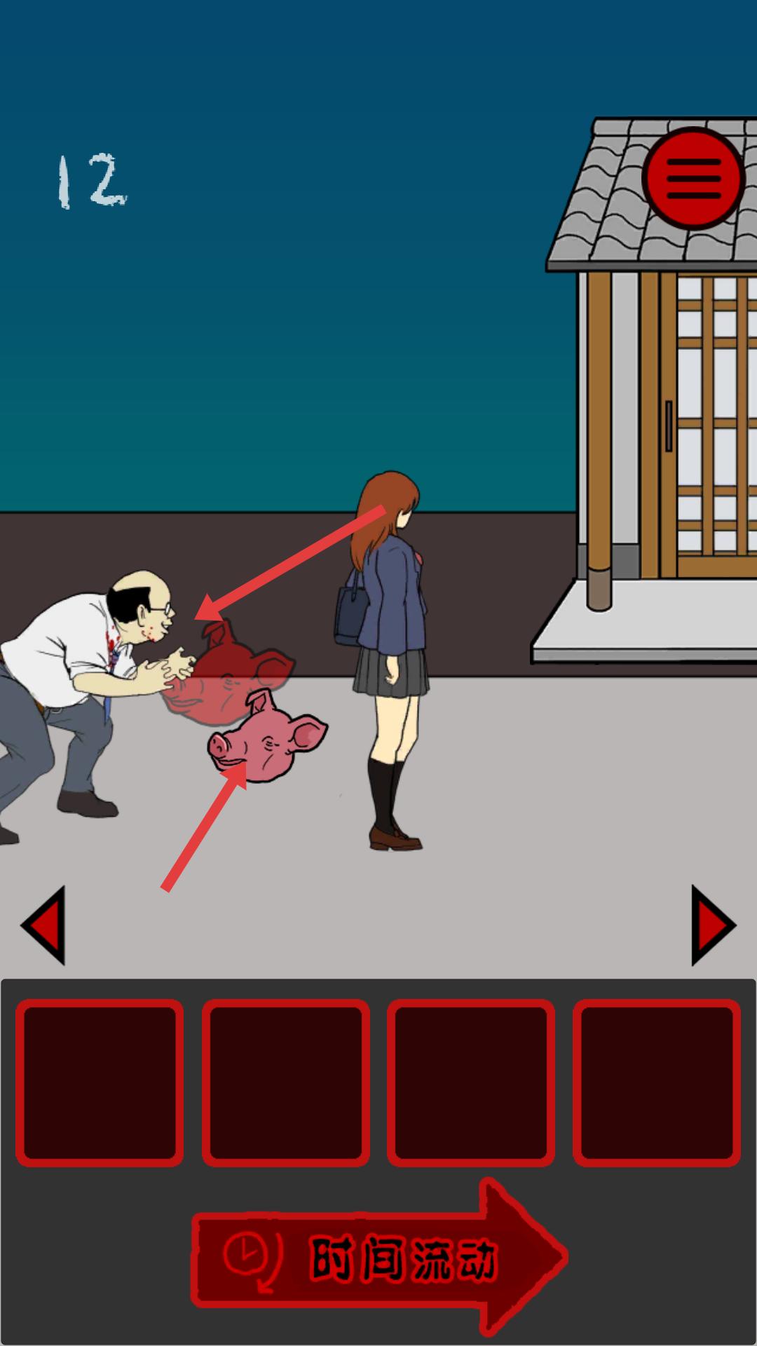 2、留意身后出現的人物與豬頭道具,靈活應對,利用場景中的元素,避免被身后的人物干擾。