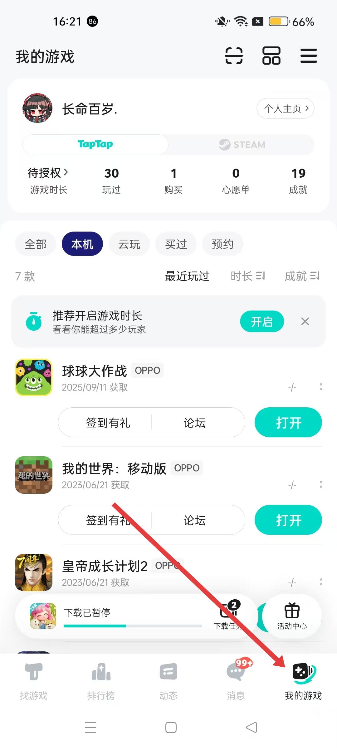 2、點擊我的游戲,進入個人游戲管理界面,可查看玩過的游戲、成就等信息,了解個人游戲歷程。