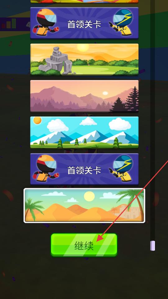3、完成一段競速后界面出現關卡選擇等內容,點擊繼續按鈕進入下一個環節。