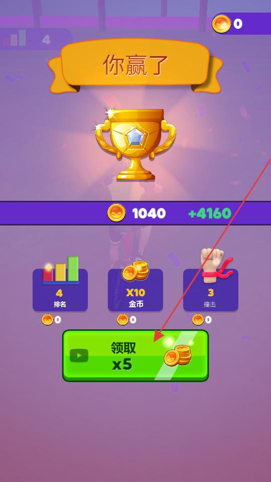 4、當贏得比賽后界面顯示你贏了的提示以及獎勵信息,點擊領取按鈕,獲取相應的金幣等獎勵,為后續升級自行車或解鎖新關卡積累資源。