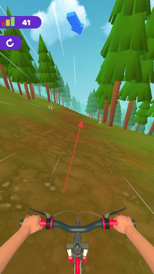 2、在山林道路騎行時操控自行車沿著道路前進,避開可能的障礙,同時留意前方出現的其他騎行者,準備在競速中超越他們,提升自己的排名。