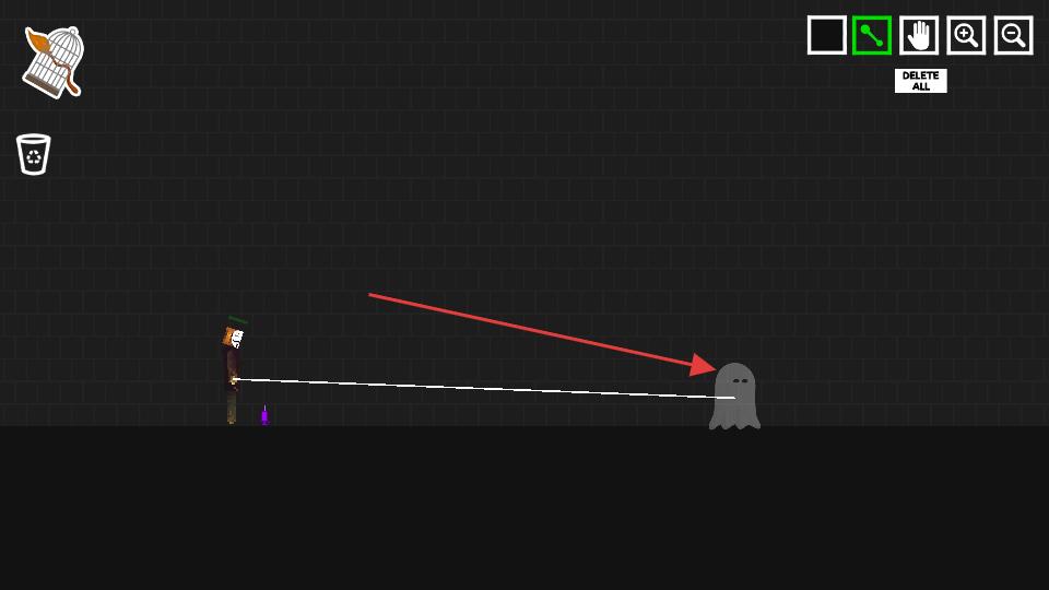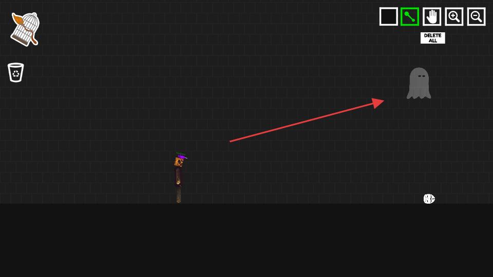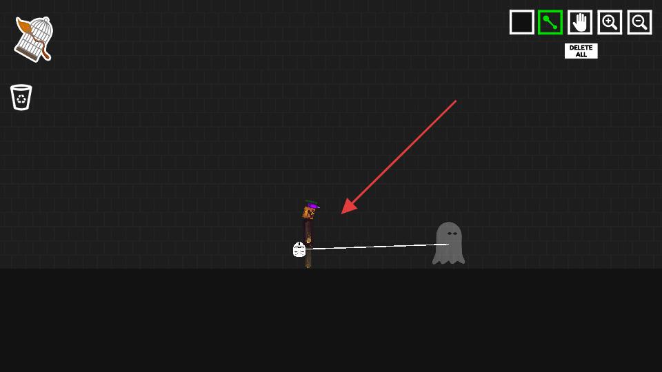 3、操控像素角色靠近幽靈,讓角色與幽靈建立連接,此時可看到連接的線條出現,確保互動操作有效。