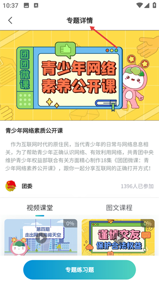 4、進入青少年網絡素養公開課,可看視頻圖文課程,學習后參與配套練習,提升網絡素養與保護意識。