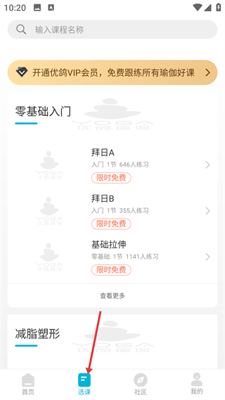 2、進入選課頁,可查看零基礎入門等分類課程,了解課程難度練習人數,選擇限時免費的課程進行練習。