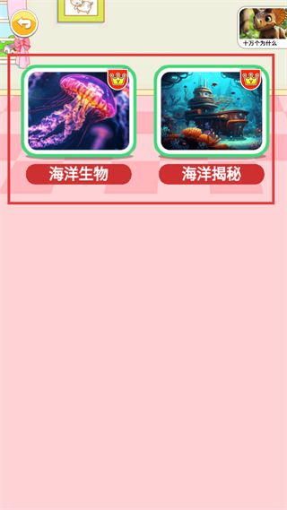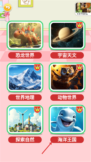1、軟件主界面含多個分類,點擊海洋王國可進入對應板塊,該板塊包含海洋生物和海洋揭秘等子分類。