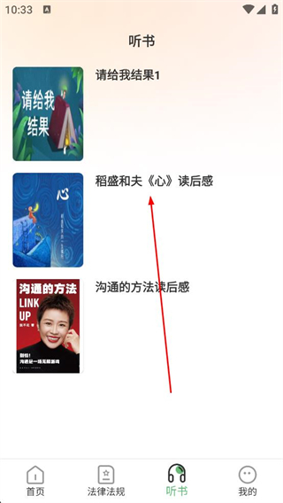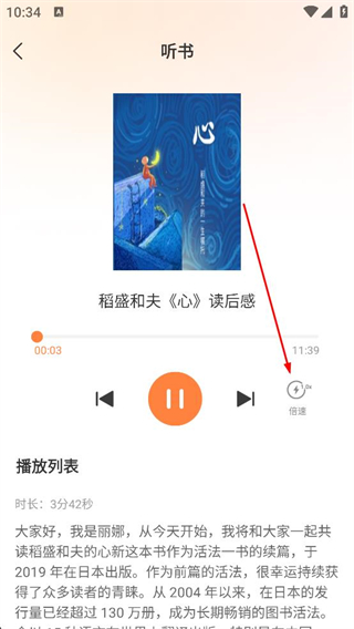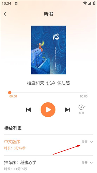 1、進入聽書頁面,瀏覽音頻列表,找到稻盛和夫心讀后感相關音頻,點擊該音頻進入對應的聽書播放頁面。