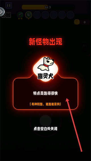 1、會出現新怪物如幽靈犬,特點是跑得很快,了解怪物特點后點擊空白處關閉提示,繼續冒險戰斗。