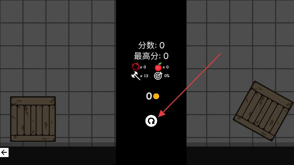 4、若戰斗失敗屏幕會顯示分數等結算信息,此時點擊重新開始按鈕,再次進入對戰場景,重新操控綠色木偶,與灰色木偶展開戰斗。