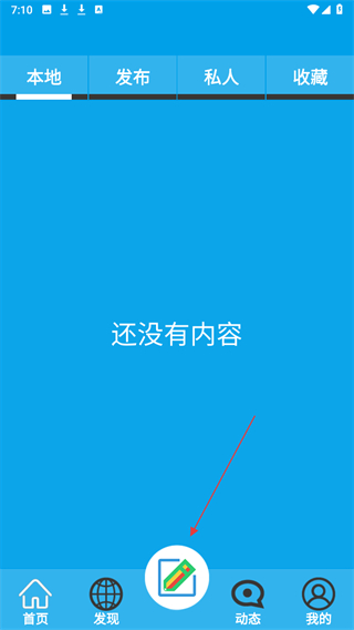 1、用戶進入之后,然后即可通過底部的創作圖標進入創作界面,開啟像素畫創作之旅。