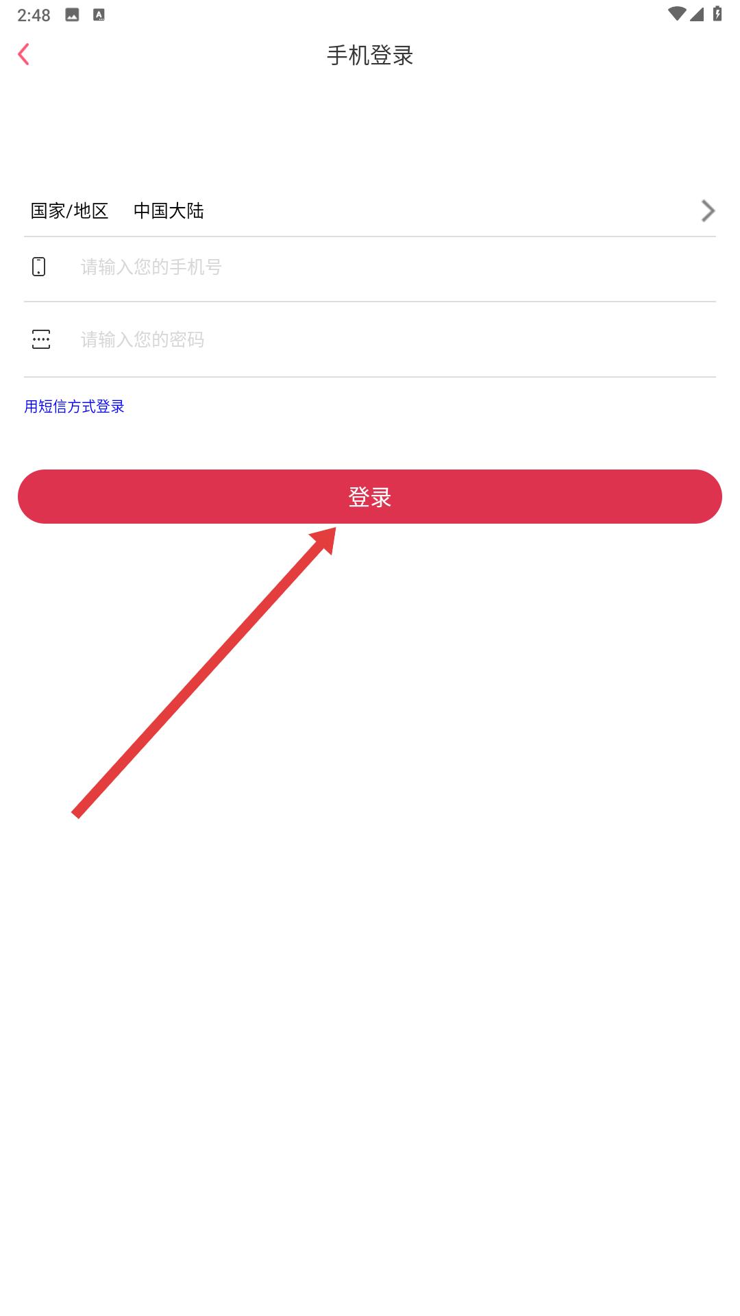 4、選擇手機登錄后,輸入手機號碼和密碼,點擊登錄即可進入應用,也可選擇用短信方式登錄,方便快捷。