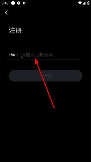 4、選擇新用戶注冊后進入注冊界面,需輸入手機號碼,填寫完成后點擊下一步,即可繼續完成注冊流程,獲取賬號權限使用相關功能。
