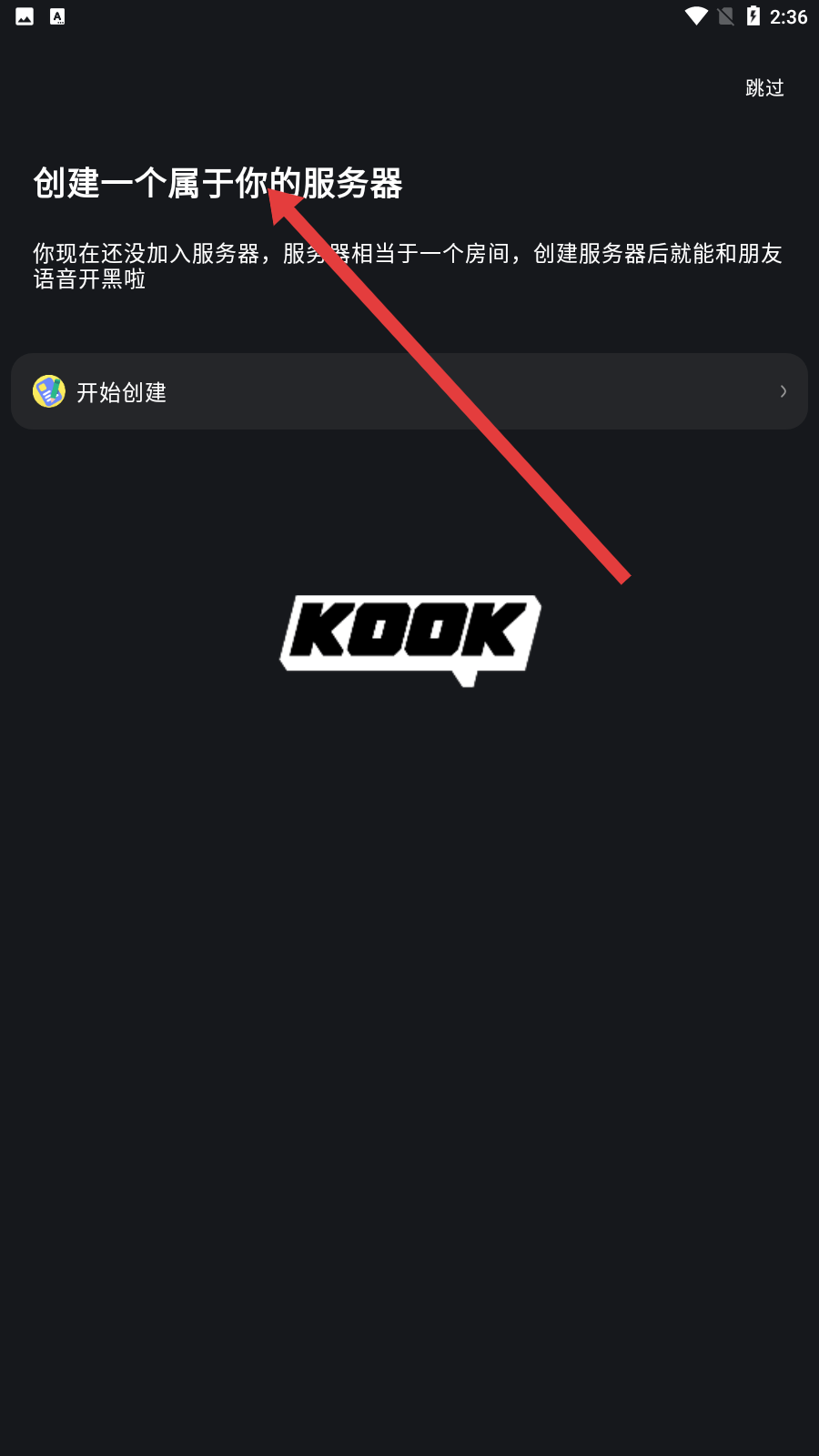 3、進入服務器創建引導頁面,可看到創建服務器的提示,服務器相當于一個房間,創建后可和朋友語音開黑,點擊開始創建進入服務器模板選擇頁面。